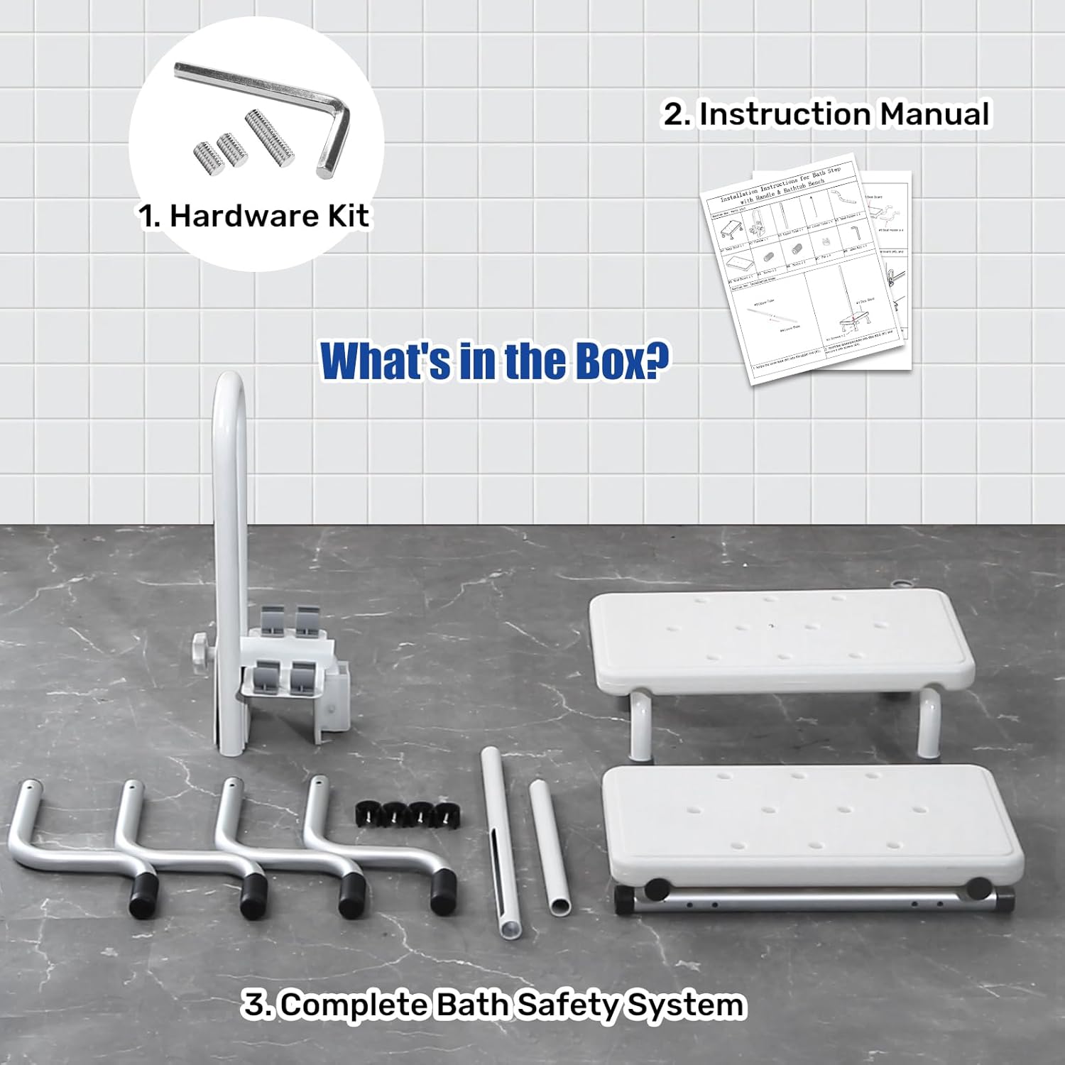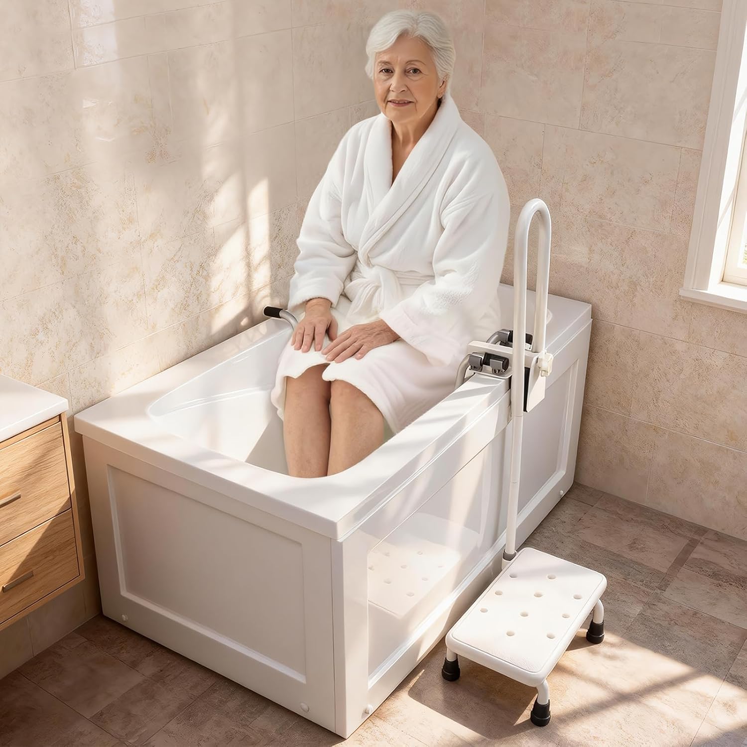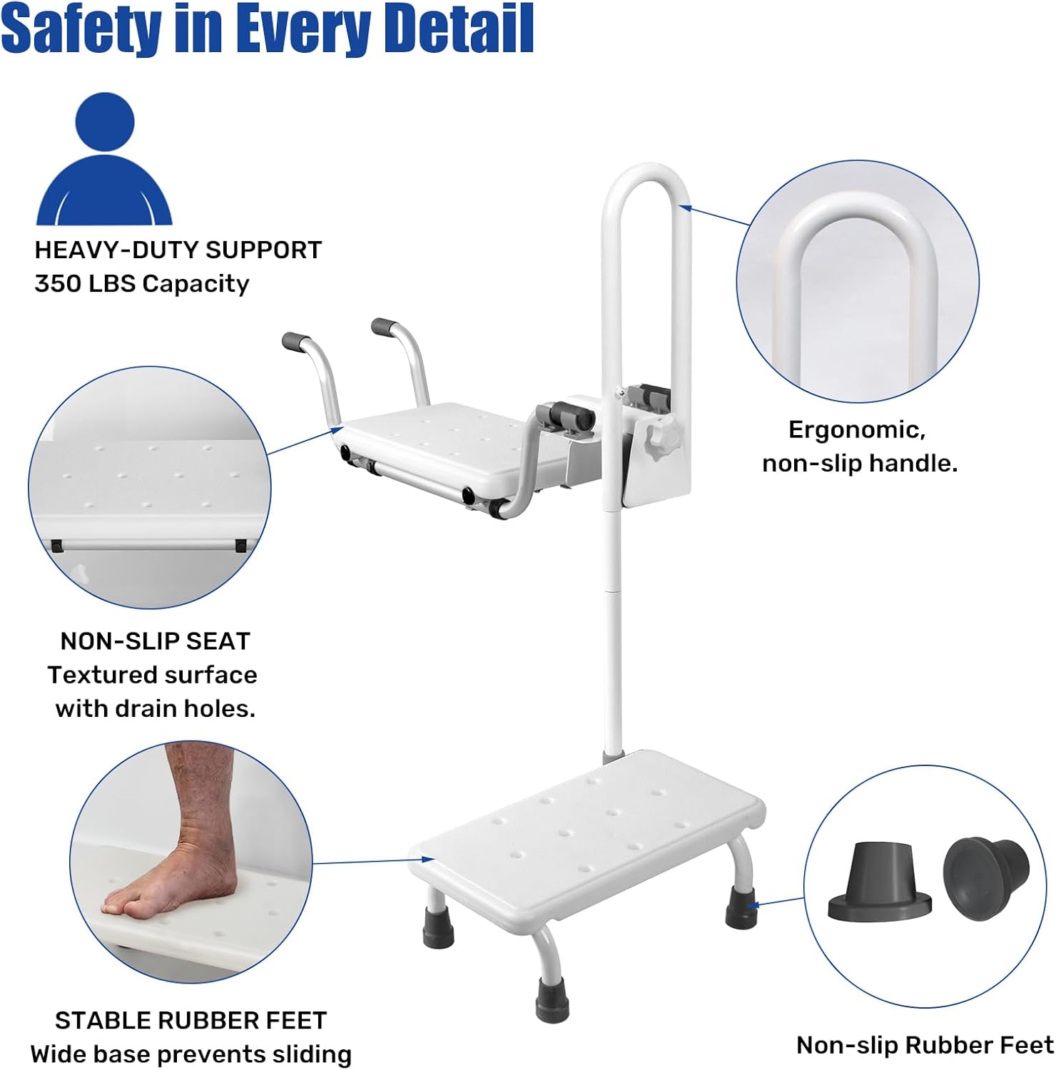 | Design | 3-in-1: step stool, safety rail, and shower seat |