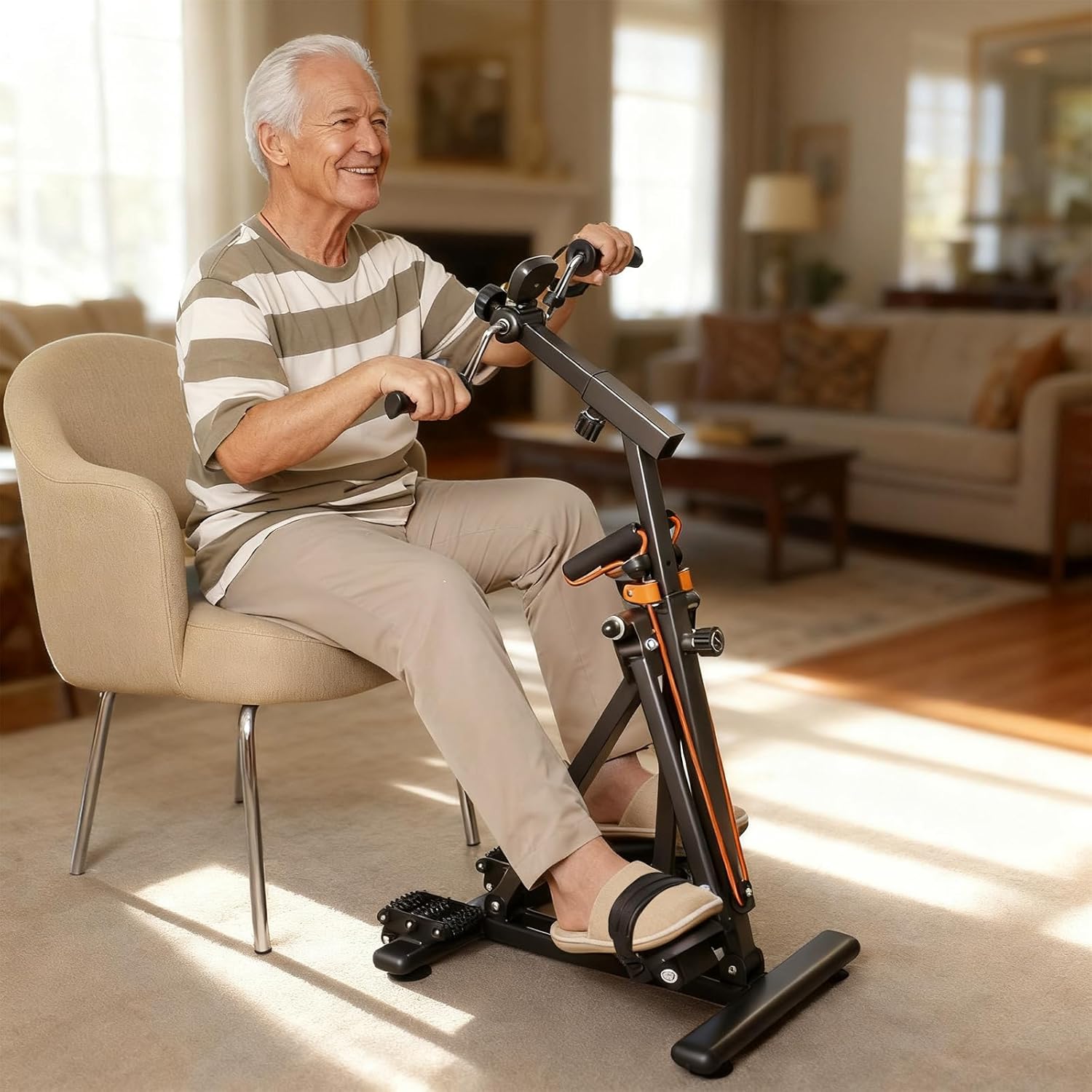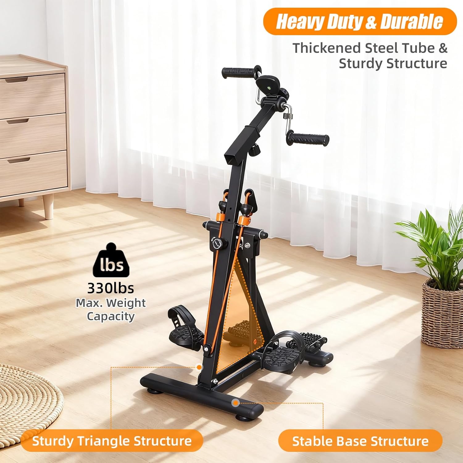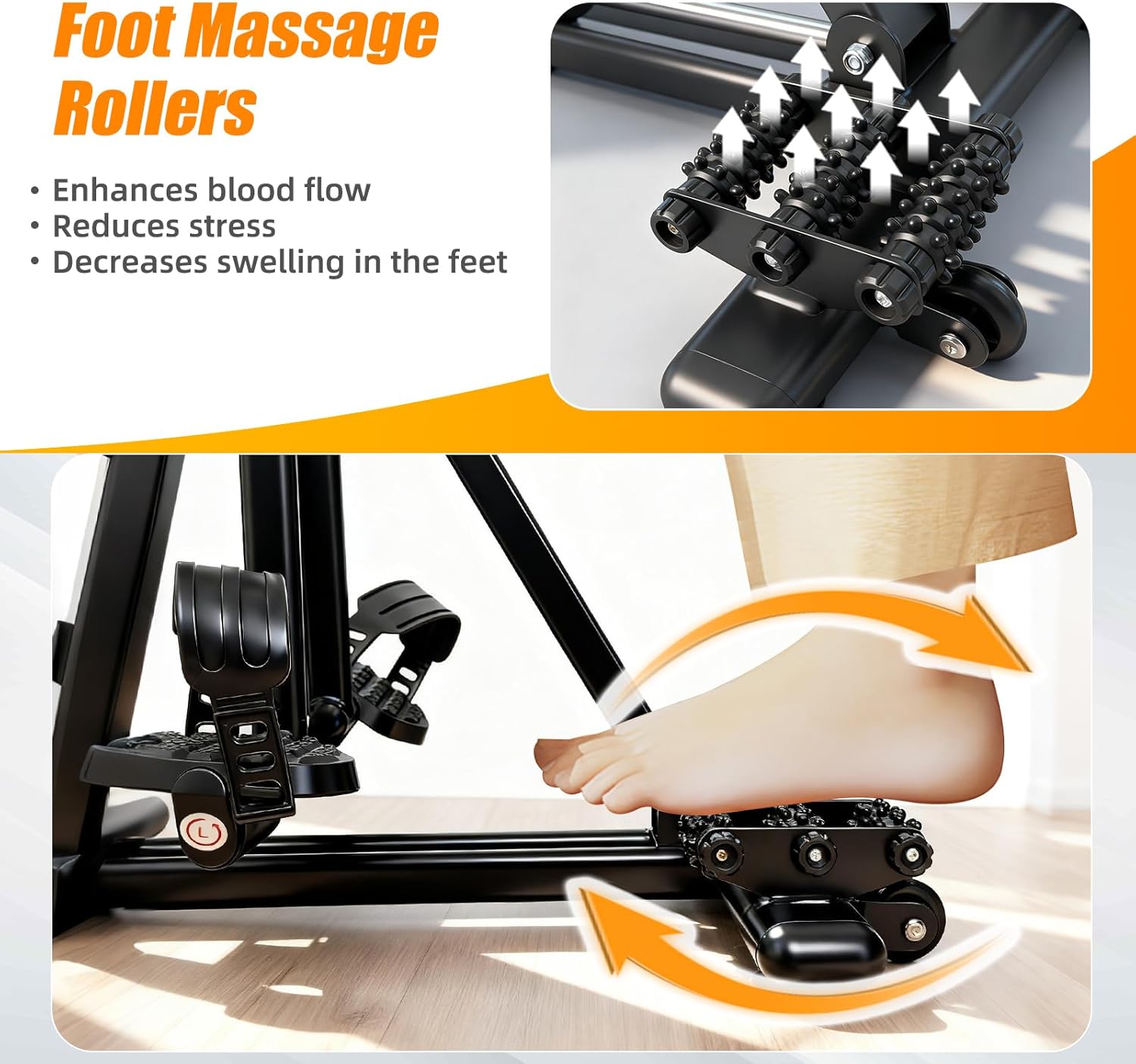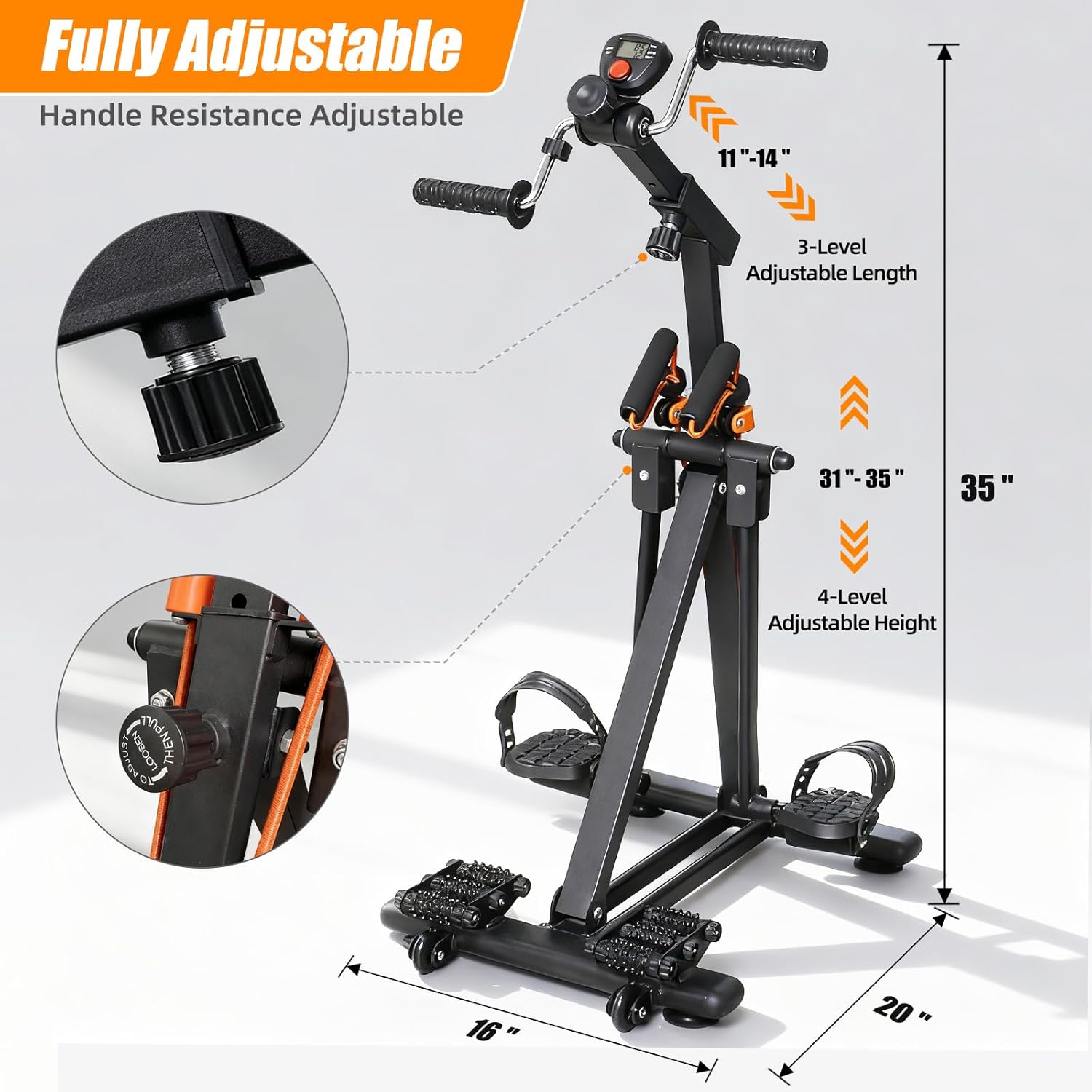 You can effortlessly alter the handle and pedal resistance and adjust your workout intensity by manipulating two tension knobs respectively.