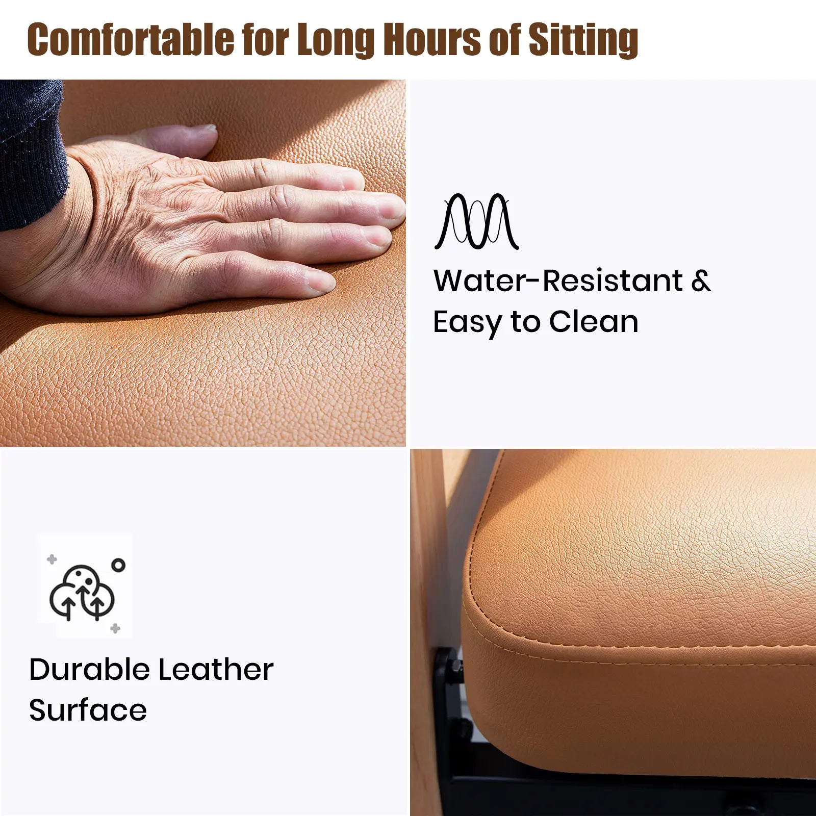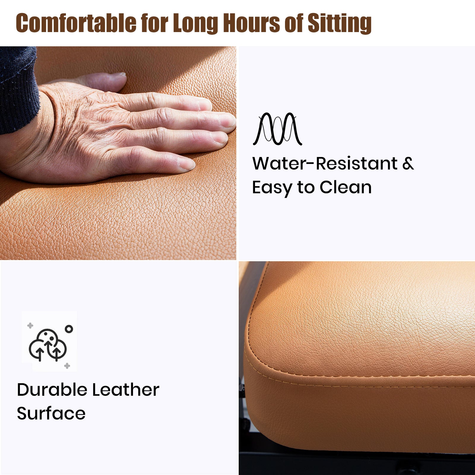 Designed with thick sponge padding for pressure relief and a smooth leather seat surface that is breathable, comfortable, and easy to maintain.