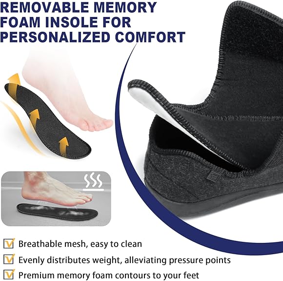 Extra-Wide Adjustable DesignAdjustable strap closure and wide-fit structure accommodate swollen or sensitive feet for a secure and comfortable fit.